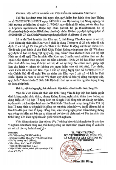 Toàn văn Thông báo số 291/TB-VKSNDTC về việc rút kinh nghiệm vụ án Thái Khắc Thành bị xét xử về tội “Vi phạm quy định về bảo vệ động vật nguy cấp, quý, hiếm” tại tỉnh Hưng Yên: